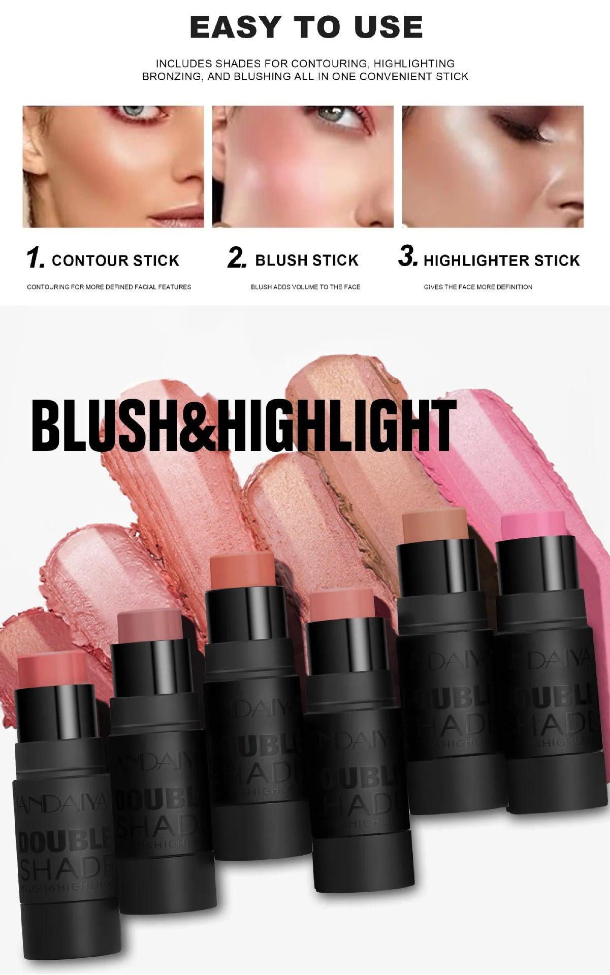 Blush&Highlighting Stick 2 in 1 Face Brightening Blusher Stick Rouge Face Blush Stick Cream Moisturize Face Illuminator Makeup