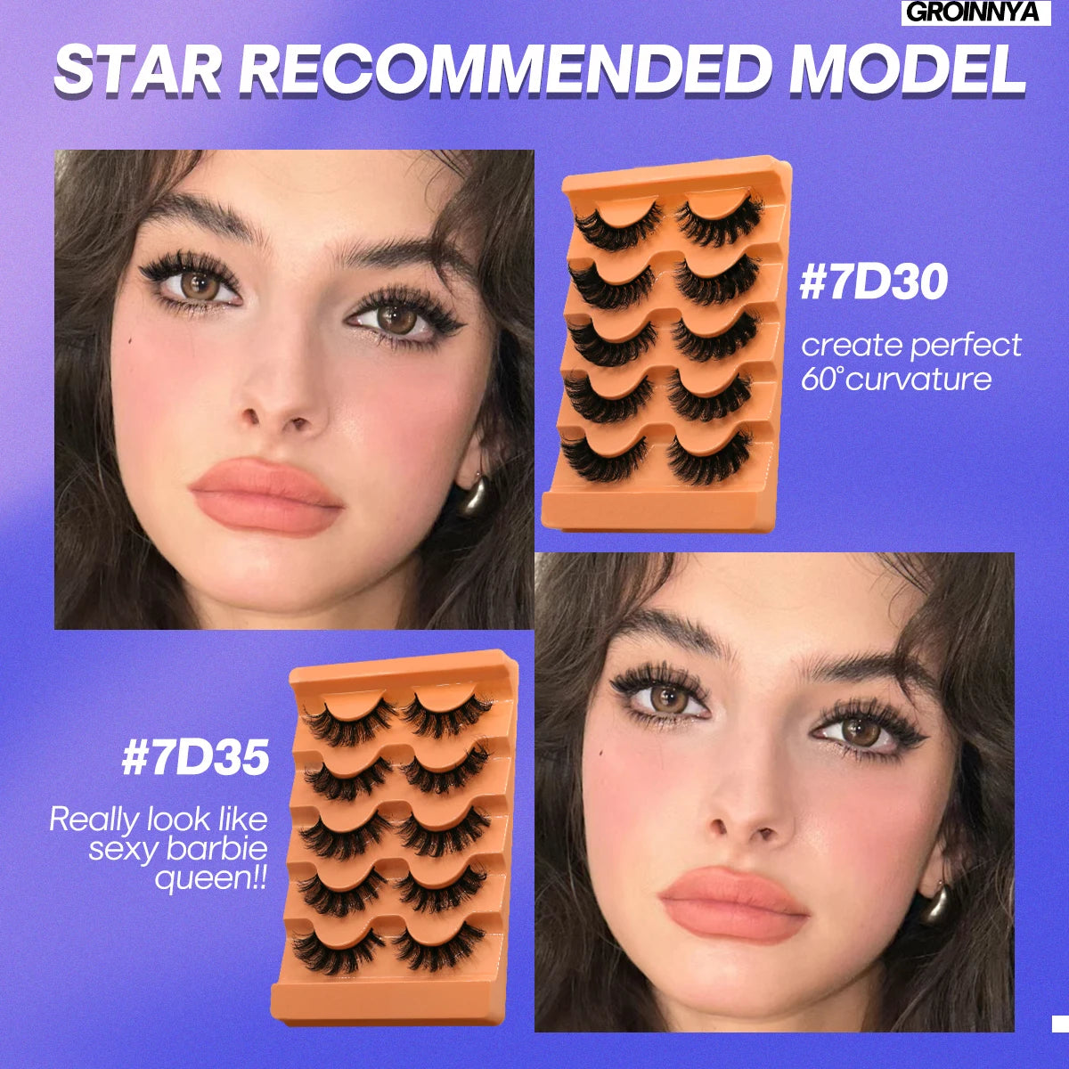 GROINNEYA 5 Pairs Fluffy Eyelashes 8D Volume False Lashes Russian Strip Lashes Extensions Thick Soft Curly Fake Lashes Makeup