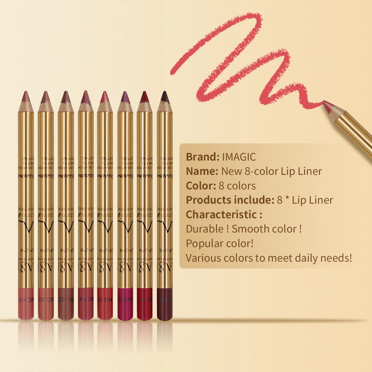 IMAGIC 8-Color LipLiner Pencil Long Lasting Waterproof Professional Soft Smooth Colorful Matte Lipstick Cosmetics Makeup Tool