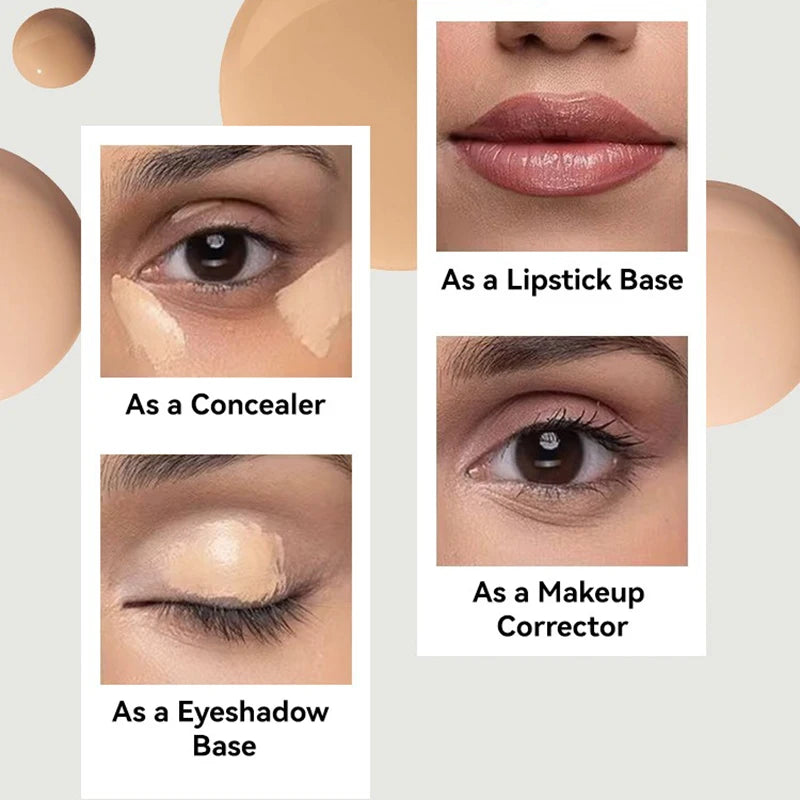 Squeeze a little onto the back of your hand first and gently press it onto your face with a sponge. For areas with large pores that need concealer, such as forehead, dark circles, corners of the mouth, nose, etc., apply 1-2 times more.